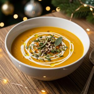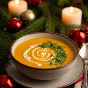 A velvety, slightly sweet soup made from roasted butternut squash—perfect for a cozy Christmas evening.
