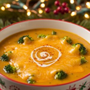 A cheesy, comforting soup that pairs perfectly with Christmas bread or rolls.
