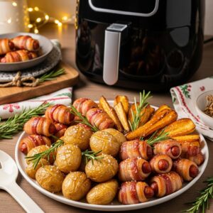 - Chop potatoes, parsnips, or wrap sausages in bacon.