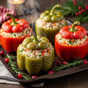 A festive vegetarian main filled with rice, herbs, and veggies.