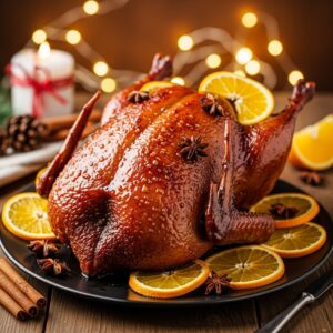Crispy skin, juicy meat, and a sweet citrus glaze.