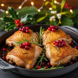 Festive and flavorful chicken roasted with fresh herbs and tart cranberries.