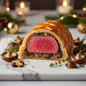 Tender beef wrapped in mushroom duxelles and flaky puff pastry—pure elegance.